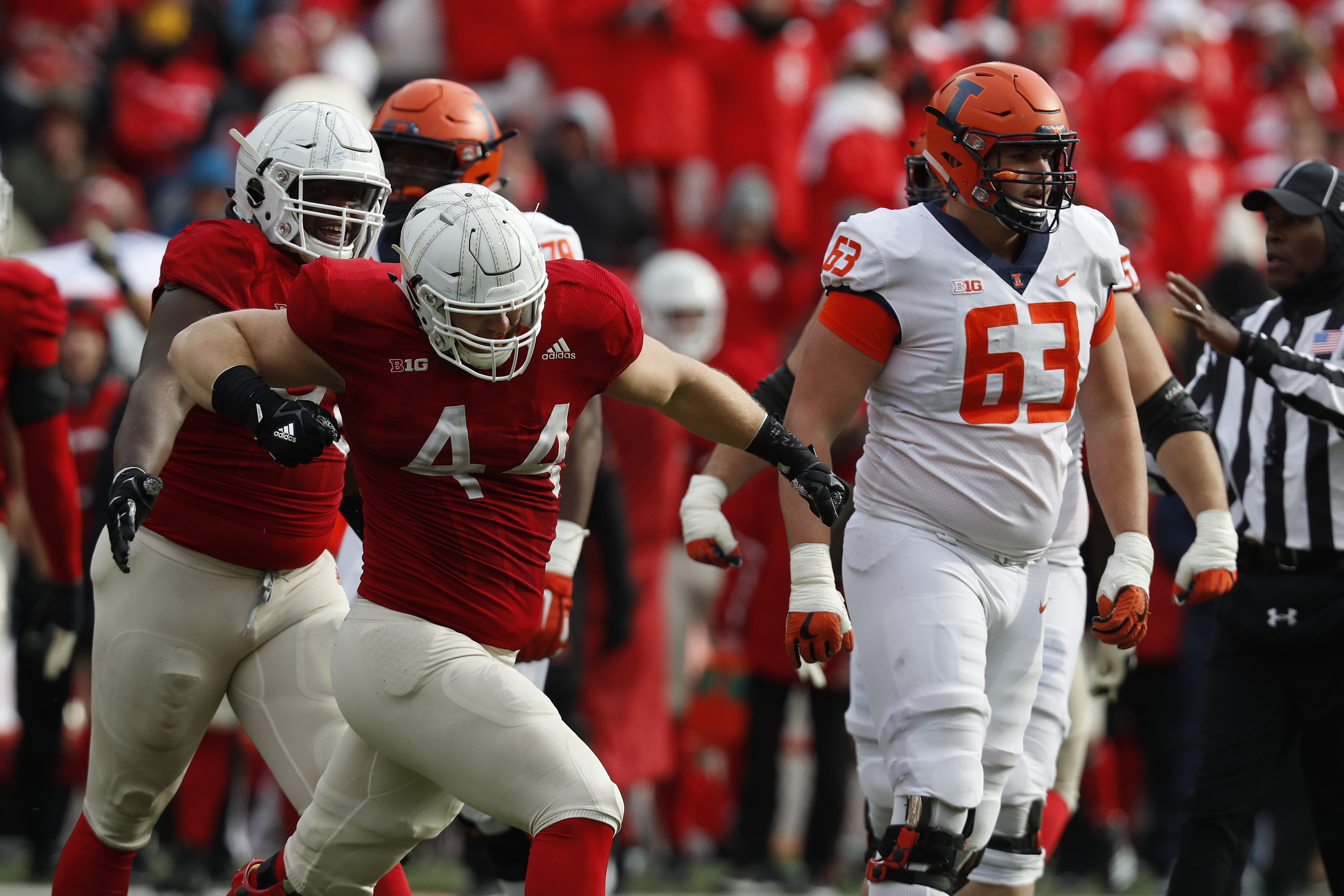 Nebraska has two senior defensive lineman who have been inspirations. Mick Stoltenberg (pictured at top) missed a chunk of the season with an injury but has come back and drew one of the biggest cheers of the season after collecting two tackles for loss in last week’s victory over Illinois. Freedom Akinmoladun was one of just 11 Football Bowl Subdivision players named to the AFCA Good Works team — he has done 100-plus volunteer appearances — and has had a solid season on the field as well with 24 tackles and 2.5 sacks. He also leads the team with 35 consecutive starts.