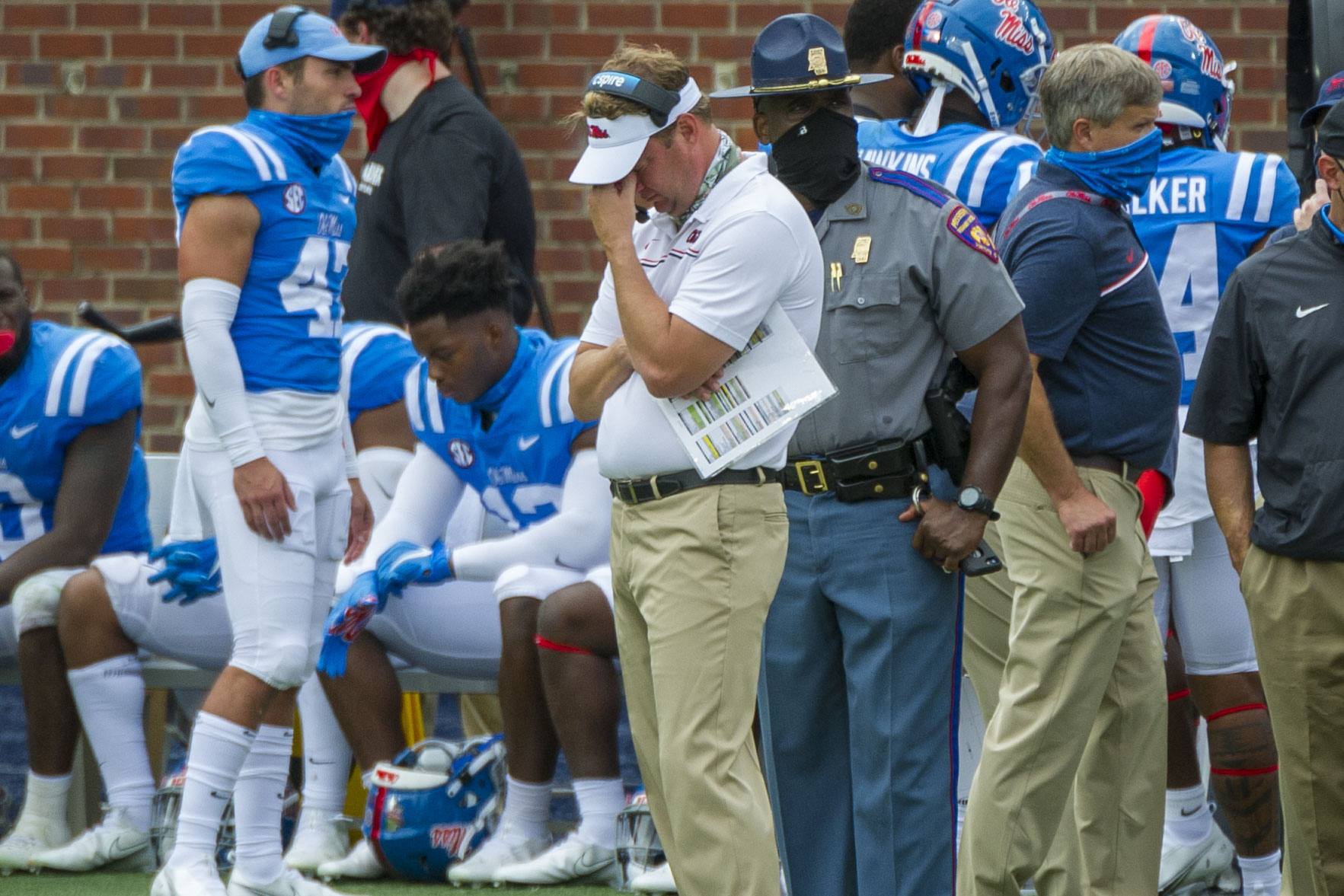 The highlight of Lane Kiffin’s teleconference call this week was the sound of a flushing toilet