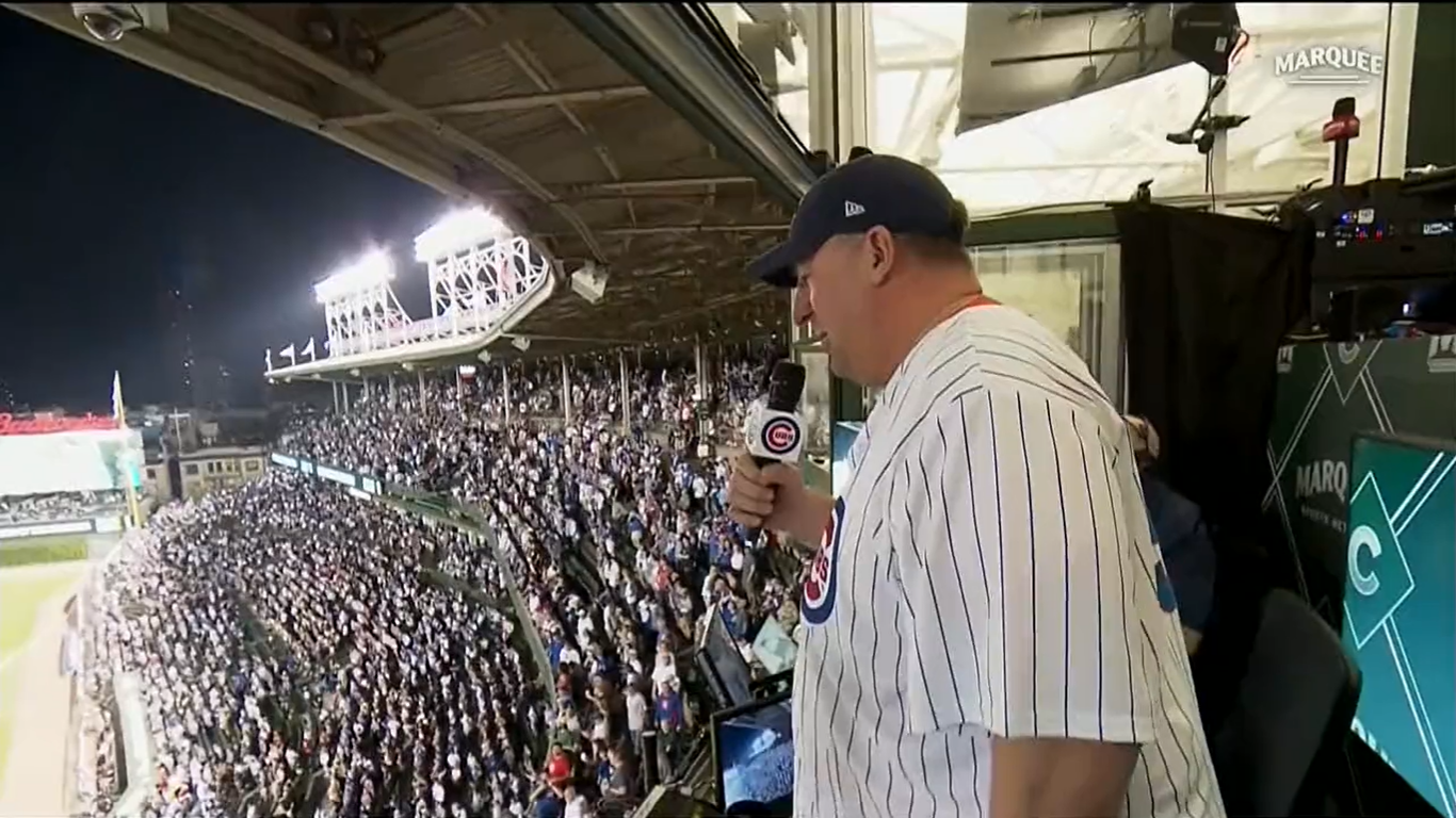 Bret Bielema takes to mic for 7th inning stretch at Wrigley Field