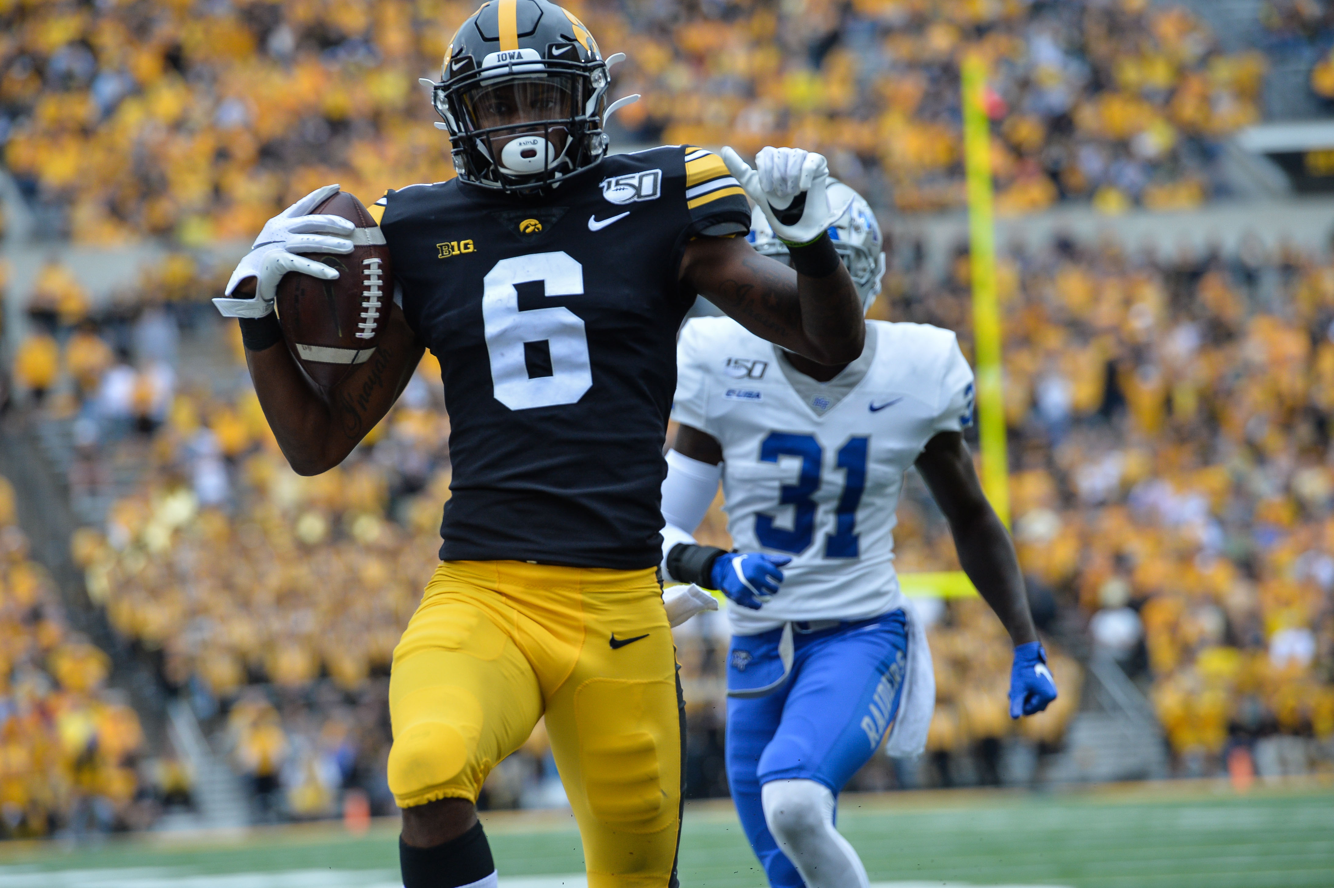 Iowa WR Ihmir Smith-Marsette jukes defender, makes him fall over