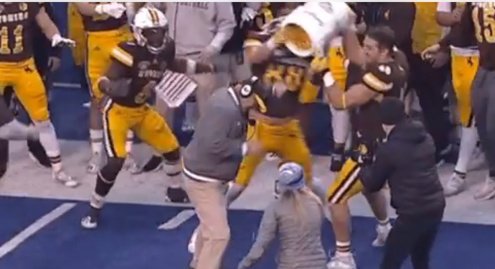Victory spuds: Wyoming enjoys customary French fry bath after Famous Idaho Potato Bowl win