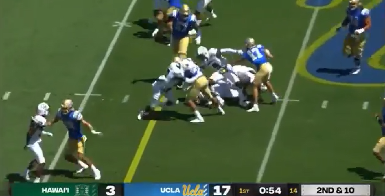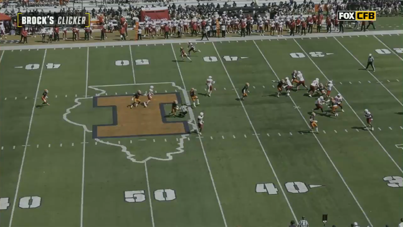 Official gets leveled by hit from Illinois defender during first half of action