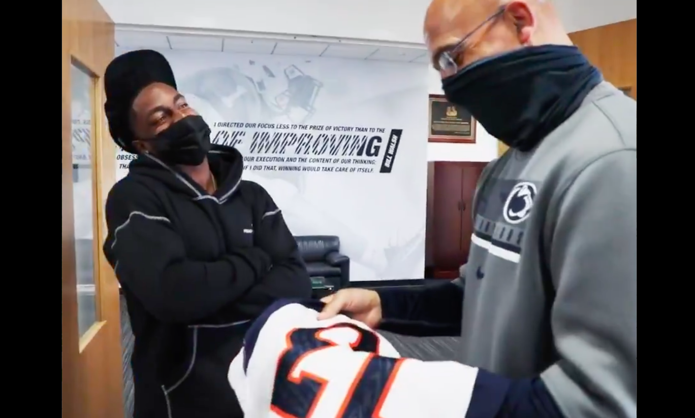 Former Penn State WR KJ Hamler gifts signed Broncos jersey to James Franklin