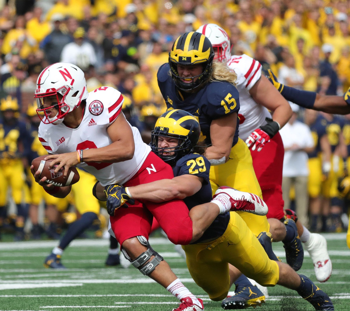 - Defensive line makes Martinez feel uncomfortable: Nebraska quarterback Adrian Martinez, a true freshman playing in his first college road game, never had a chance. Michigan’s pressure was stifling against an offensive line that was completely overmatched.