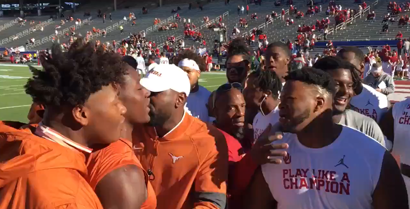 Every single player in the Texas-Oklahoma game issued an unsportsmanlike conduct penalty before kickoff