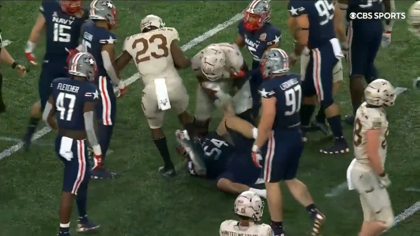 Early post-whistle scuffle, stomp punctuate chippy start to Army-Navy game