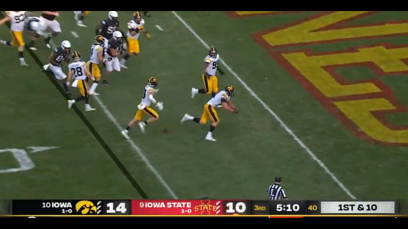 Spencer Petras drops in beautiful dime to Charlie Jones for Iowa’s second TD vs Cyclones