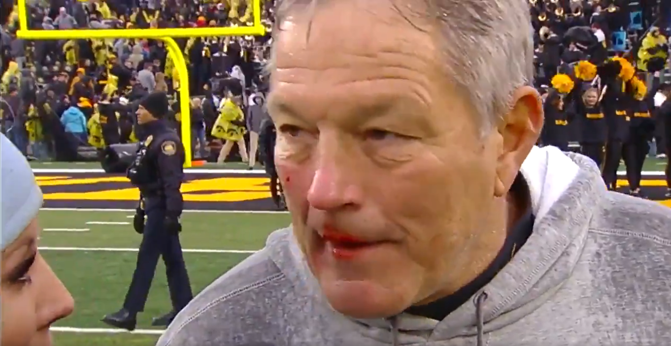 LOOK: Kirk Ferentz was left bloodied following Iowa’s celebration