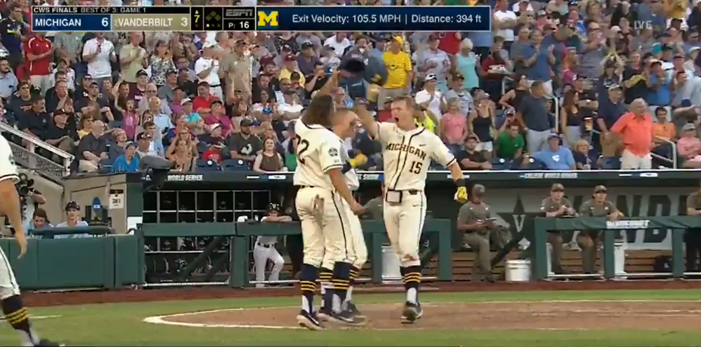 WATCH: Michigan takes early 2-0 lead on Vanderbilt in CWS championship