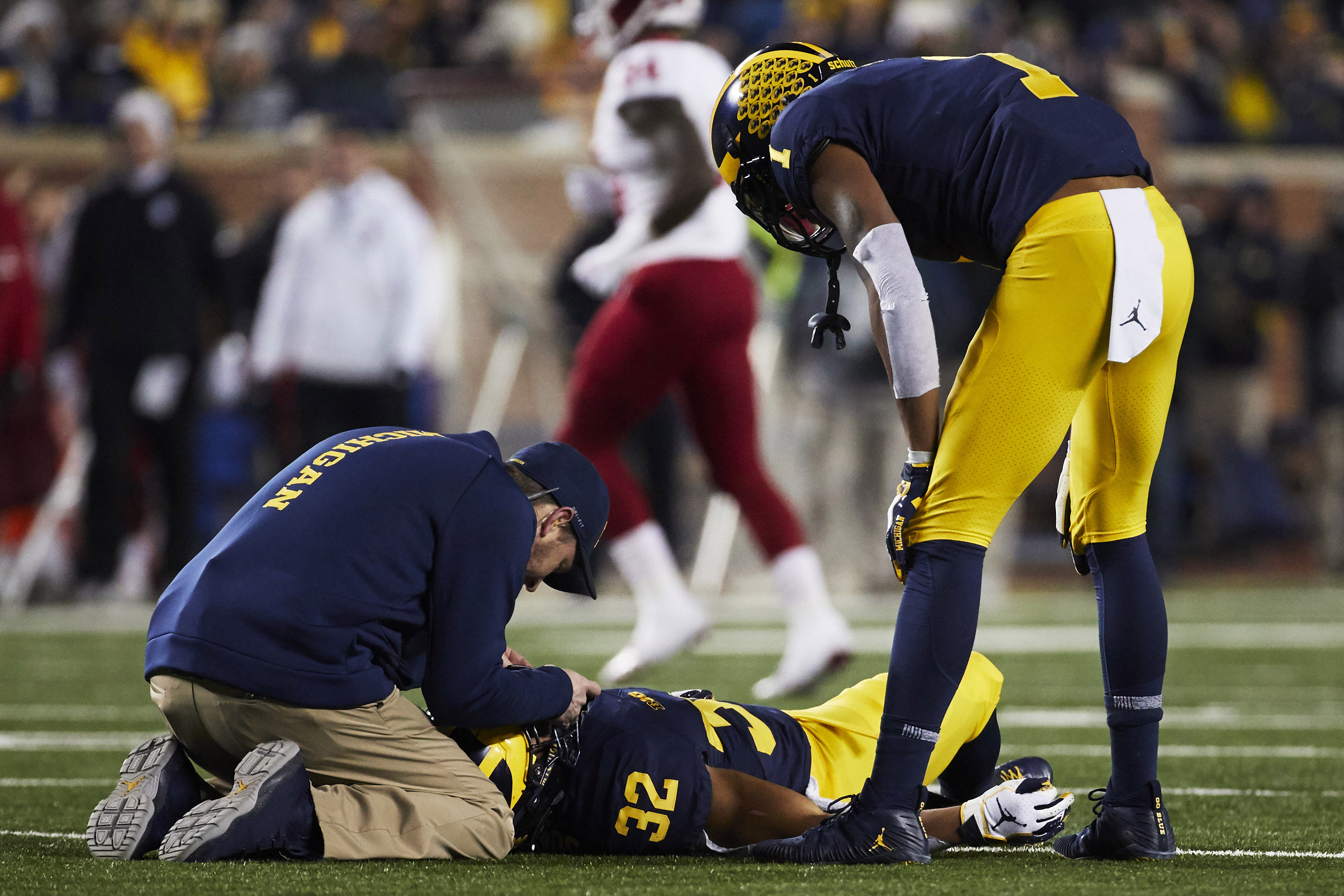 Michigan’s Berkley Edwards carted off the field after frightening injury