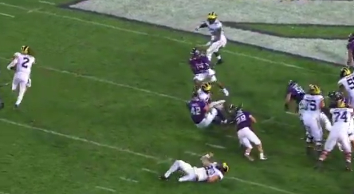 WATCH: Michigan RB Karan Higdon called for holding on big play while being tackled