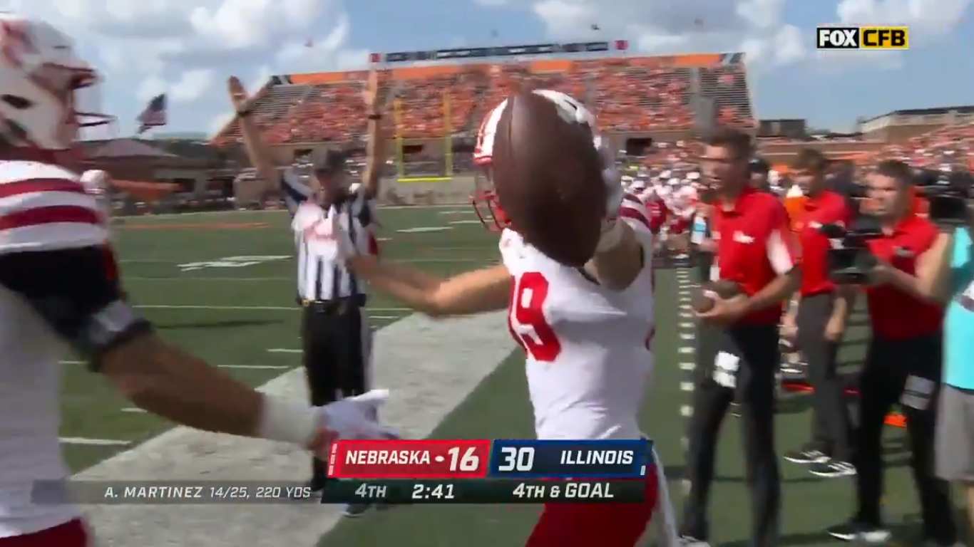 Nebraska scores 4th quarter touchdown on 4th down to get within one score of Illinois