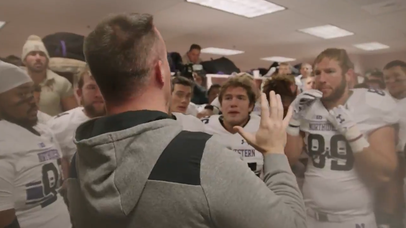 WATCH: Pat Fitzgerald gave emotional, motivational post-game speech after Northwestern won the West