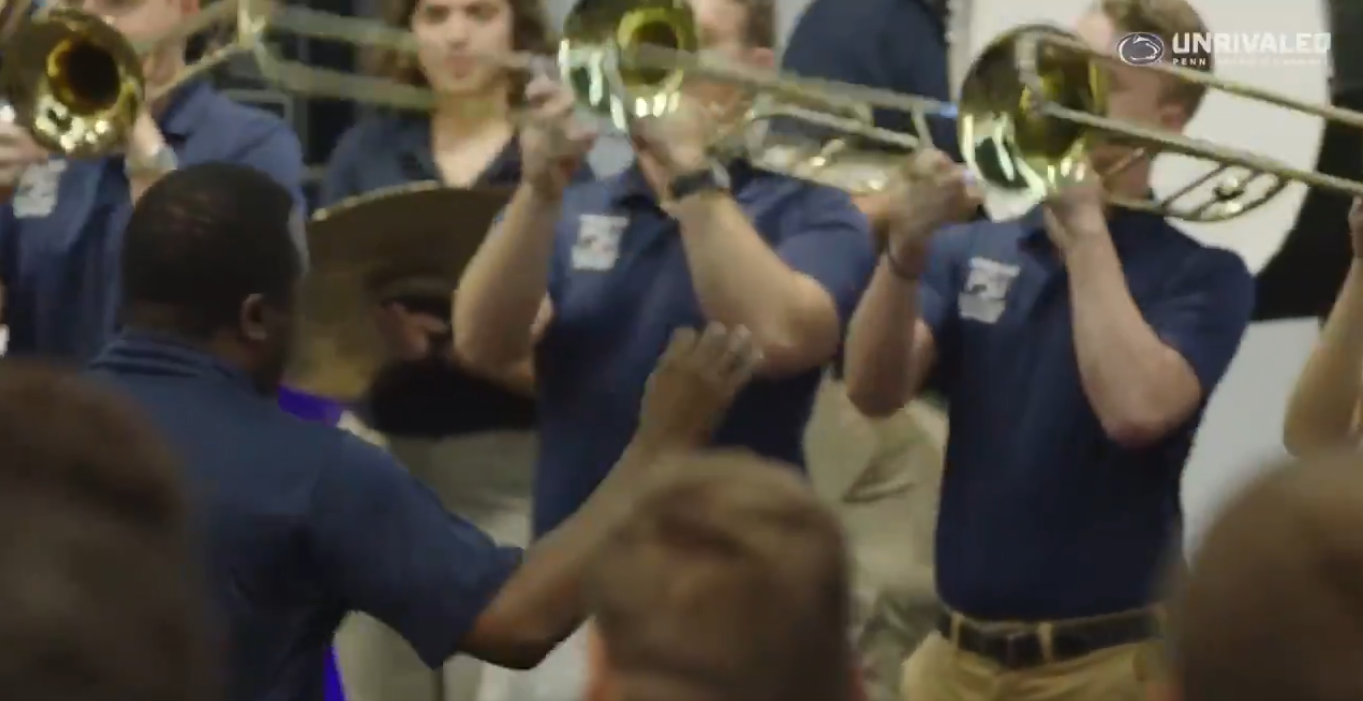 WATCH: Penn State band crashes team meeting, football players respond emphatically