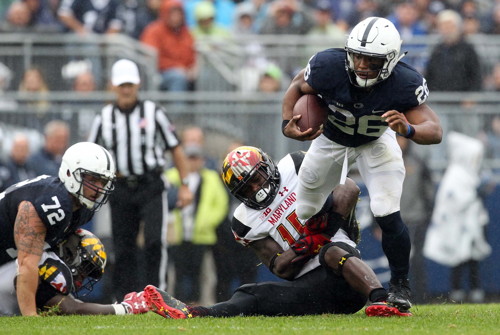 Penn State starting RT Andrew Nelson carted off with serious leg injury