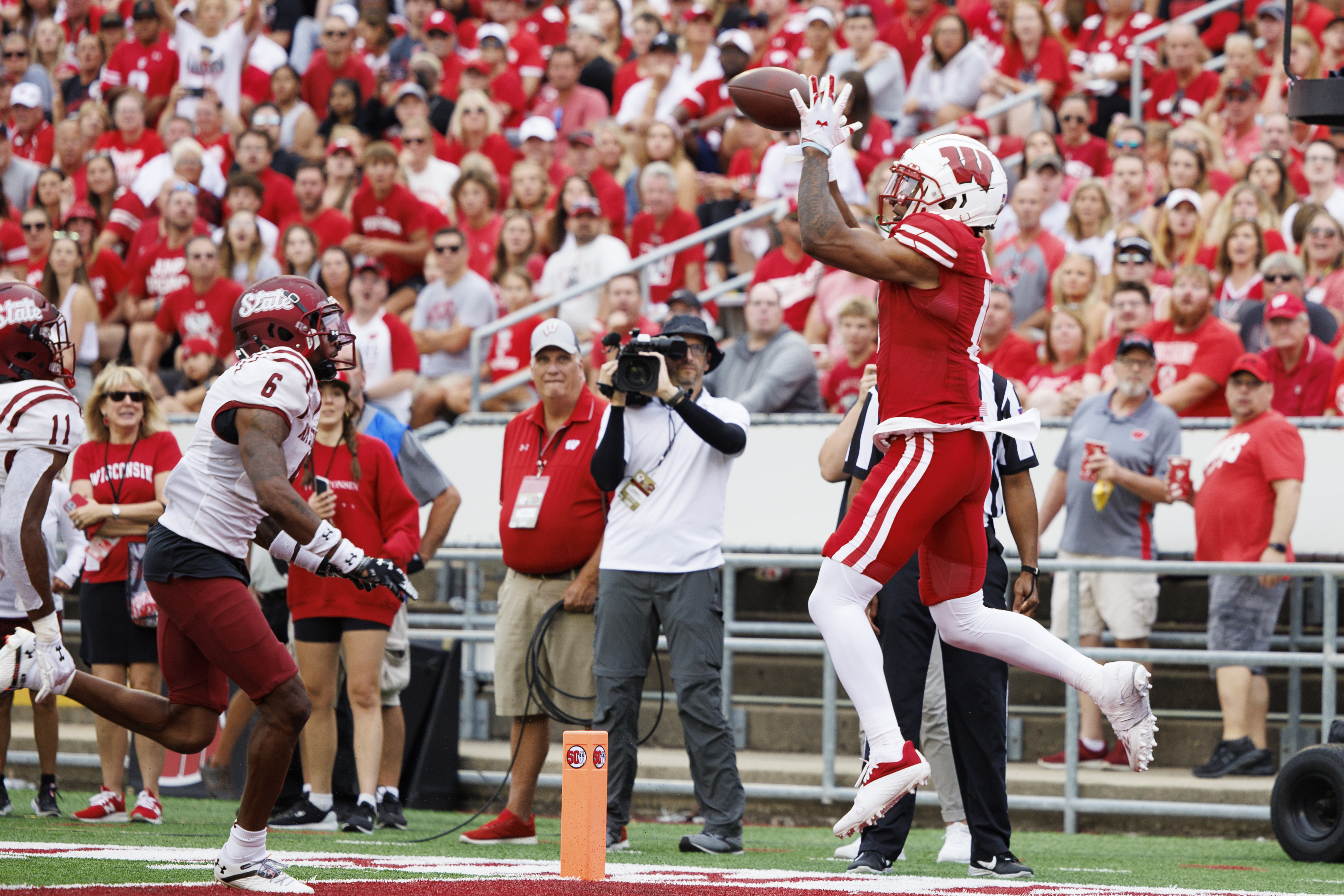 Wisconsin DB Ricardo Hallman secures first career pick with brilliant one-handed grab
